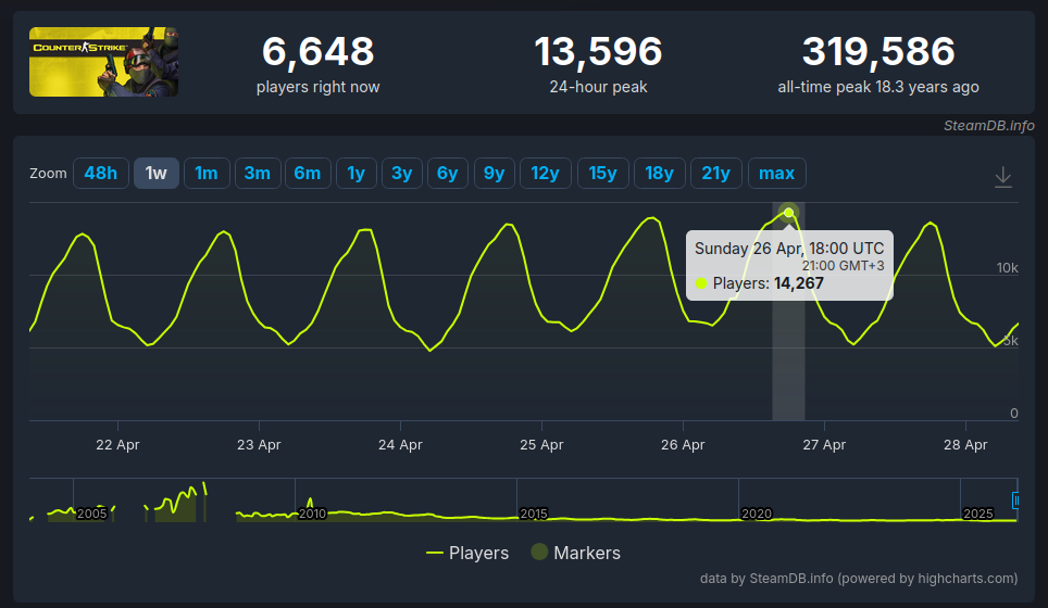 Но Steam - это врехушка айсберга. У CS 1.6 до сих пор живёт отдельная серверная субкультура: паблики, сборки, лаунчеры, мониторинги, локальные комьюнити. На трекерах прямо сейчас можно найти забитые сервера по 32 игрока.