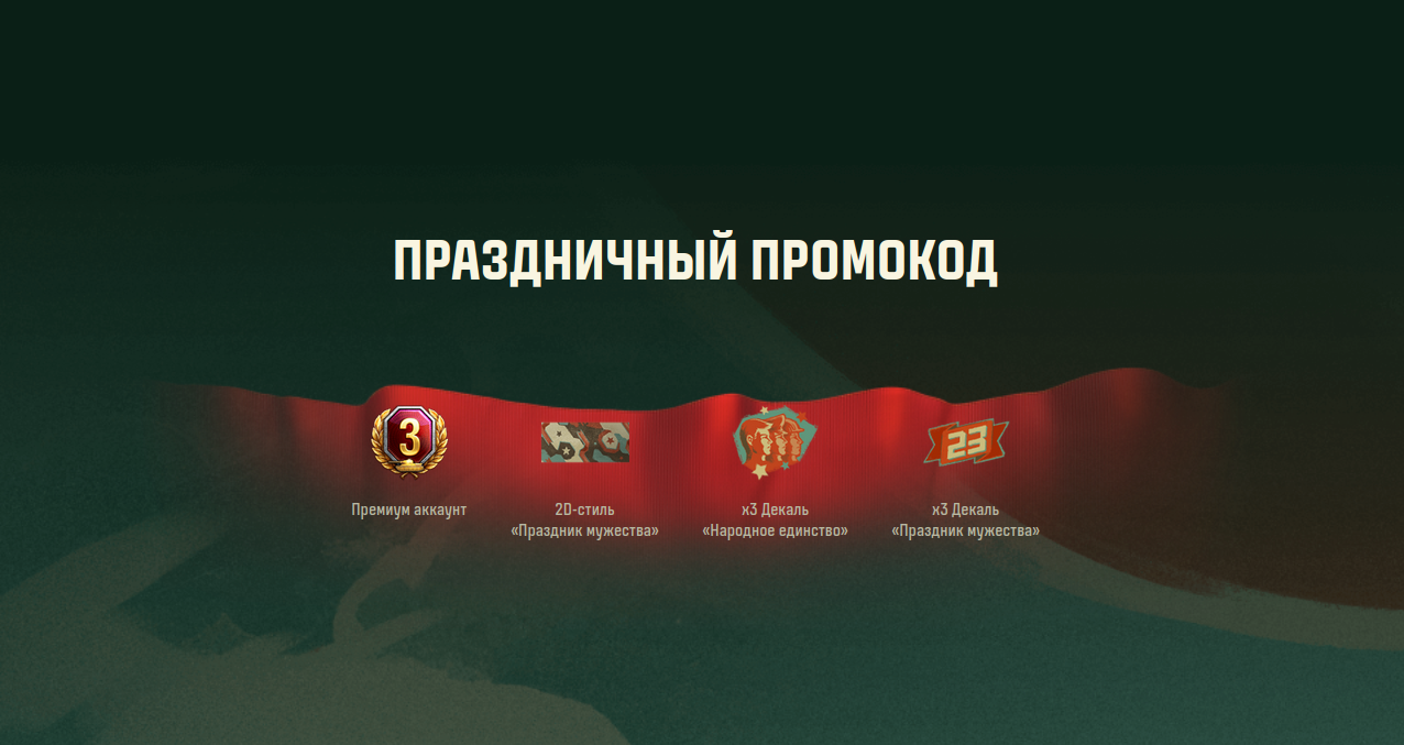 Вышел новый бонус код в честь празднования 23 февраля: