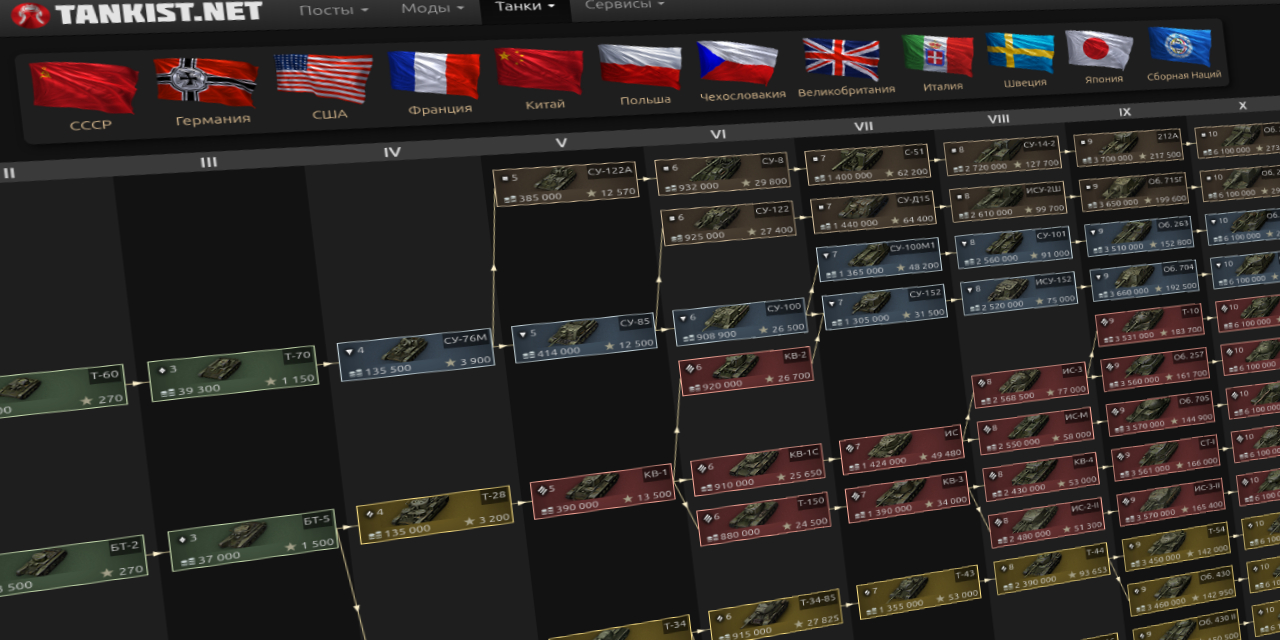 Уже сейчас доступны ветки развития всех наций в игре, а так же информация по каждому танку.