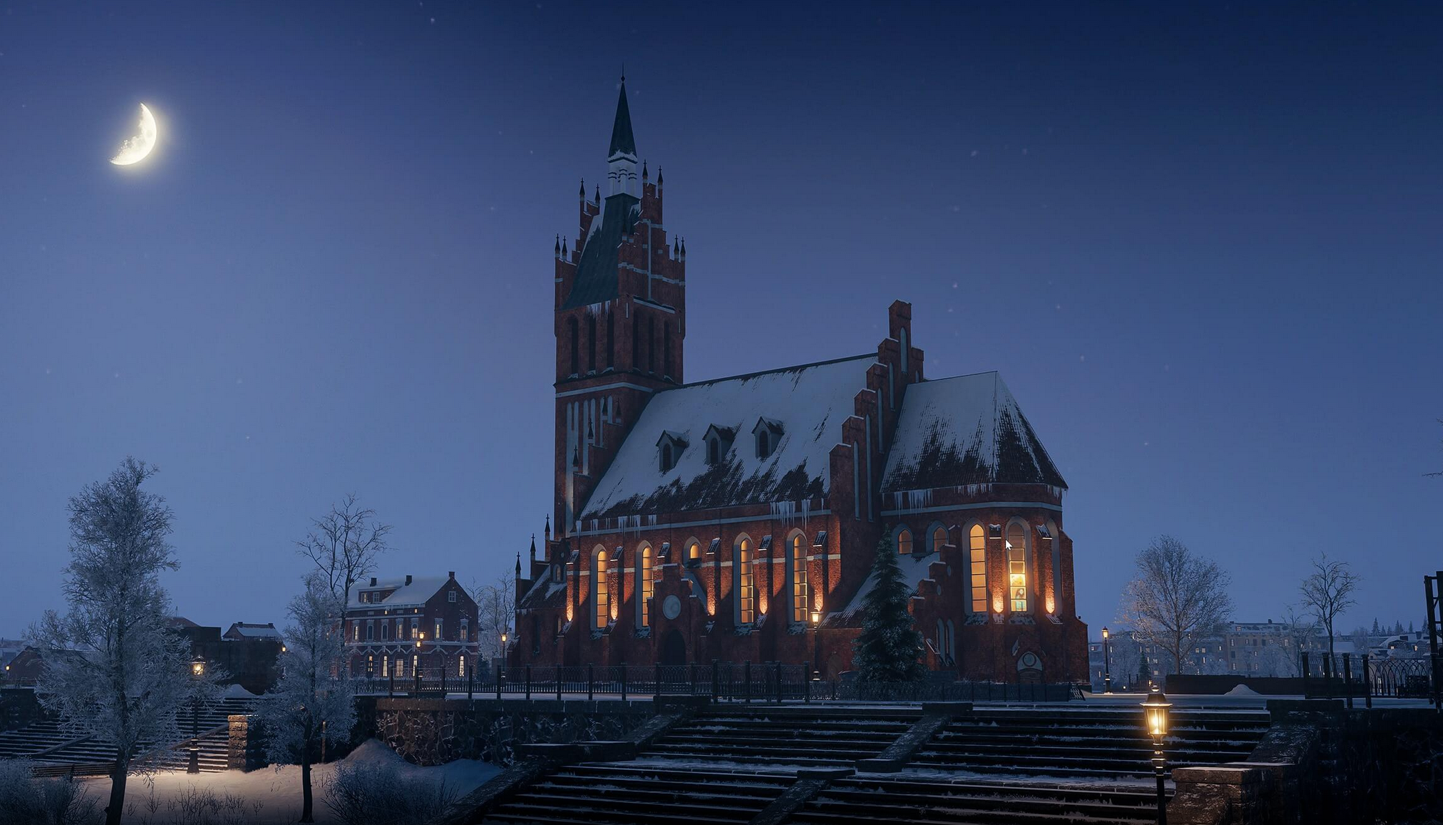 В обновлении 1.37 на карте Калининград появится новое вечернее освещение: город погрузился в мягкие сумерки. Сочетание луны и уличных фонарей подчёркивает линии зданий и памятников, превращая привычные места в атмосферную арену для боёв. Такой антураж добавляет глубины и выразительности игровому процессу.